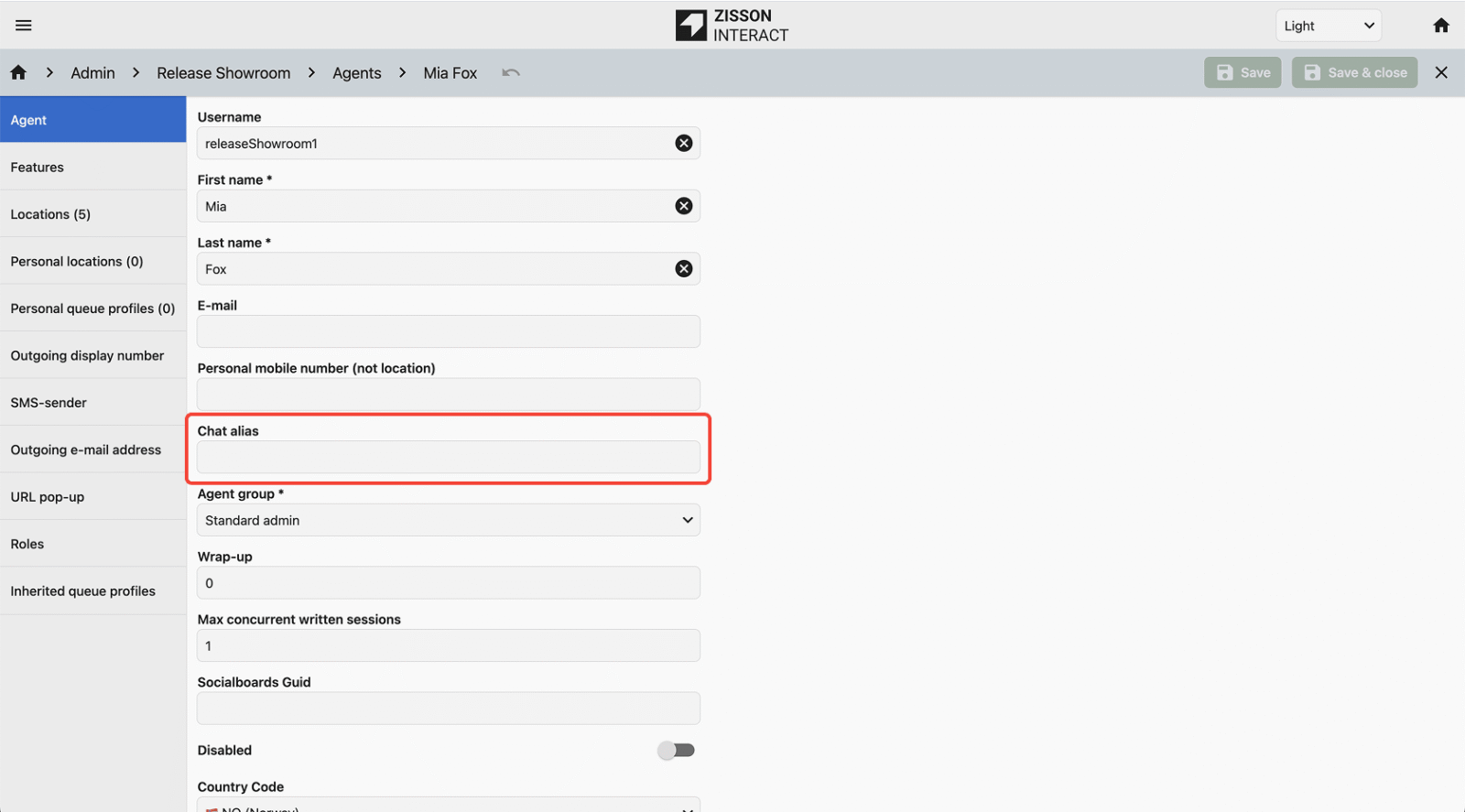 Agenter kan bruke et egendefinert alias i chat i stedet for sitt personlige navn, som gir bedre personvern, konsistent kommunikasjon og fleksible navnekonvensjoner.