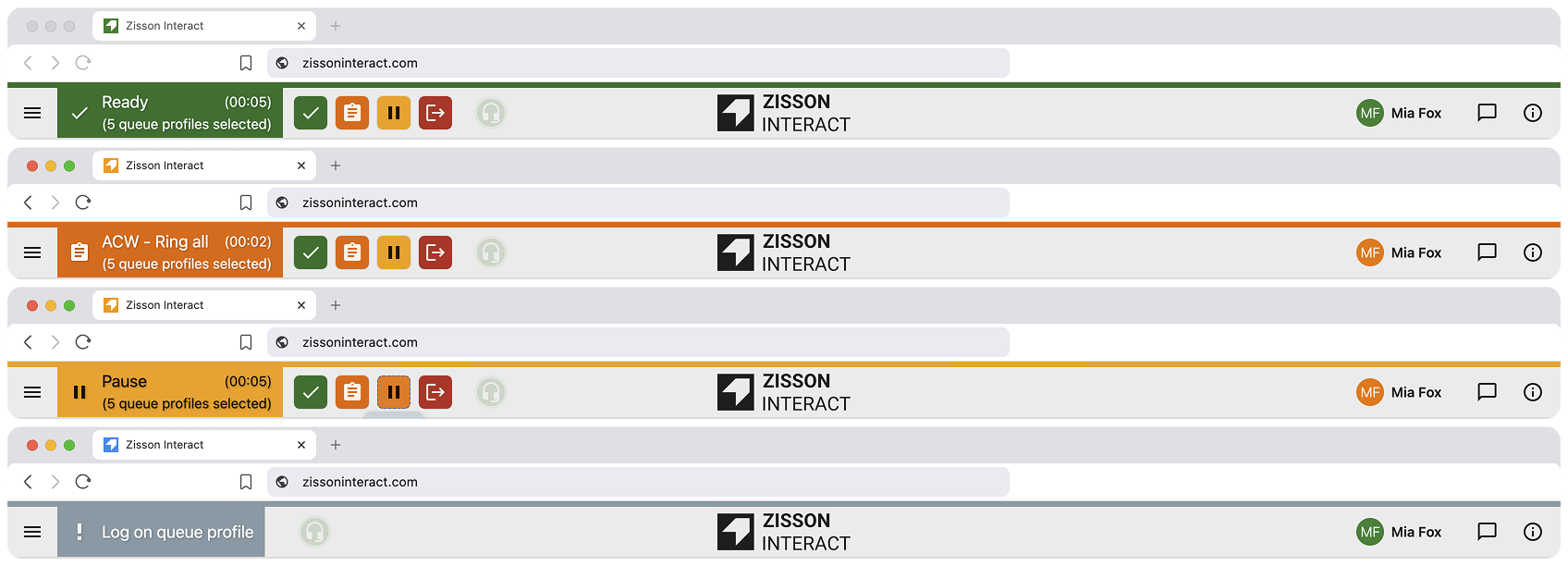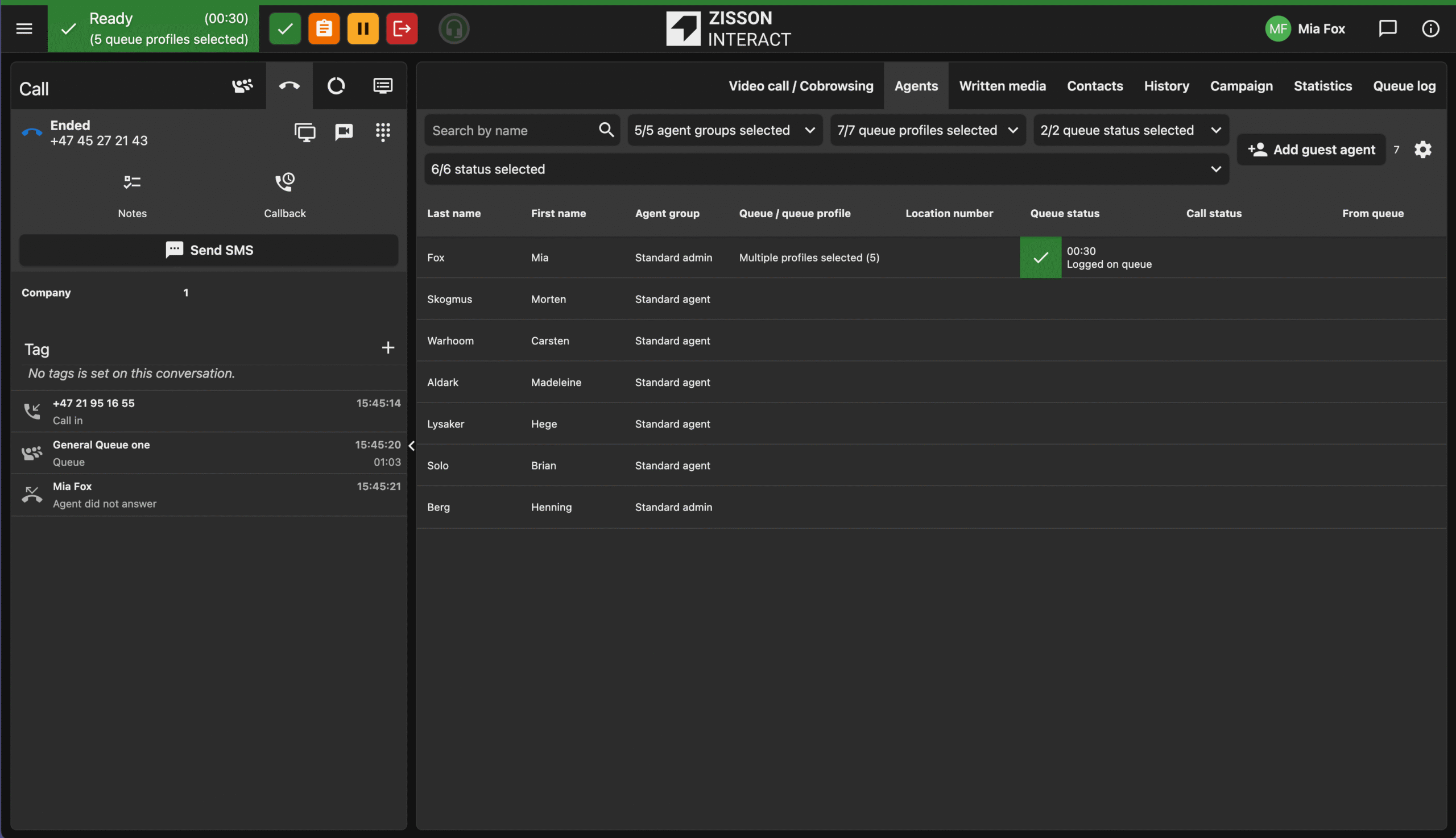 Agenter kan administrere viderekobling direkte i Zisson Interact basert på status.