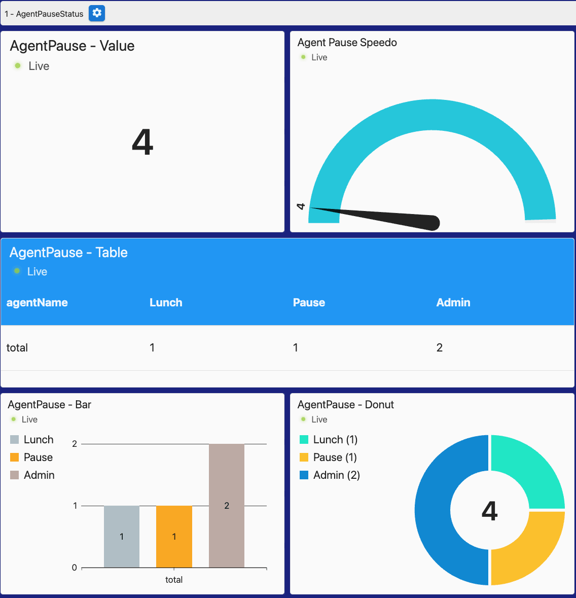 Sanntidsoversikt over agenters pausestatus i Wallboard 2.0.